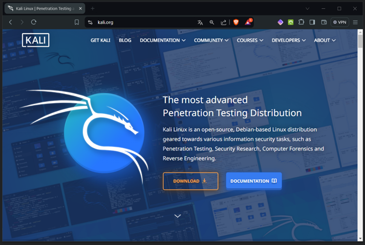 Visita la página oficial de Kali Linux en https://www.kali.org/. Selecciona la opción “Download” para descargar el software Kali Linux.