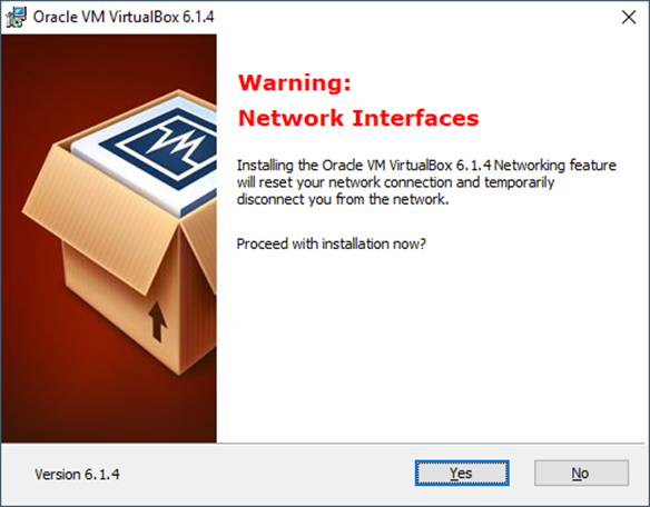 A continuación nos avisara que si continuamos la instalación puede haber un corte de conexión a internet en el equipo donde estamos instalando. Esto es debido a que se instalan interfaces y el software necesita parar y volver a arrancar servicios de conexión.